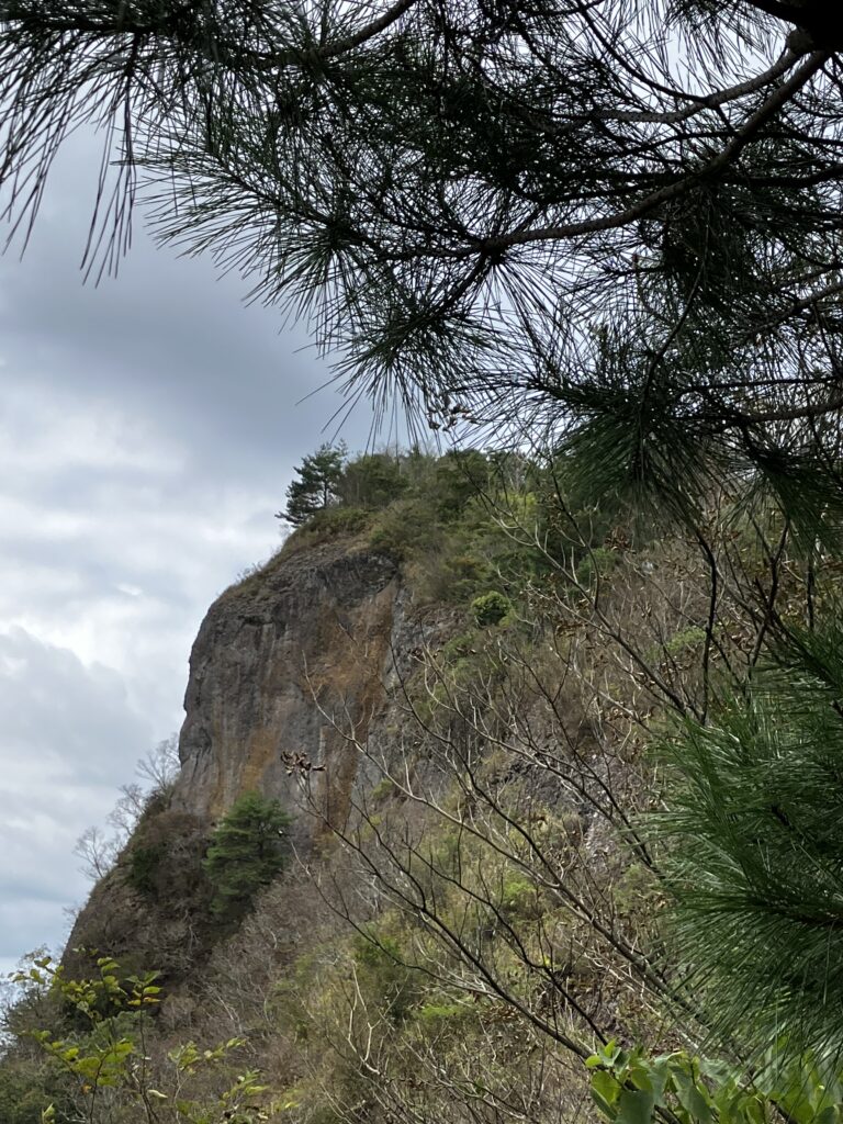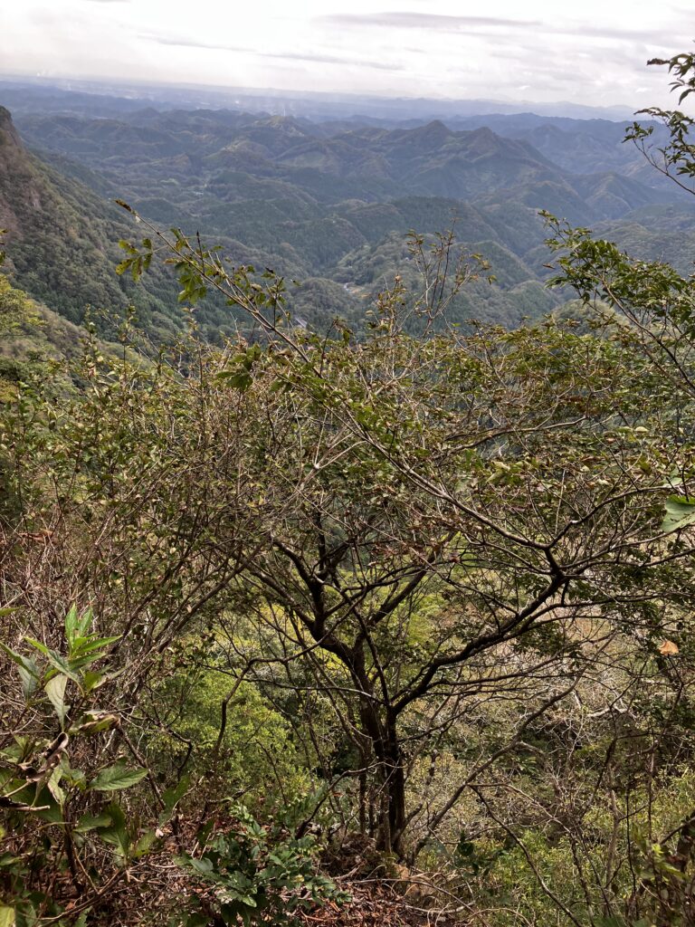 木々のトンネル抜けた先は圧巻の景色でしたね。山頂までが653mで一般的に低山なのですが、それでも上から見える下の景色はとても綺麗でした。写真真ん中の崖っぽいところが頂上です。あと少しなのですが、写真左側見て分かる通り途中幅狭くて両側が崖になっている道もあって、なかなかスリリングです。